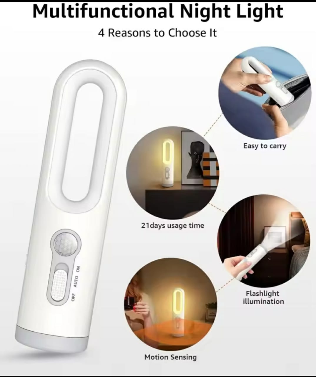 Be the first to review “LED Rechargeable Motion Sensor Night Light 2-In-1 Portable Flashlight with 3 Lighting Modes” Cancel reply